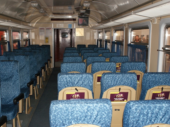 Vlak nás překvapil z mnoha směrů. Toto byl jeden z příkladů „země neomezených možností“. Stáří jednotky jsme odhadli tak na 40 let, ovšem uvnitř jsme nalezli LCD obrazovky, látkové potahy sedadel, která byla uspořádána atypicky 2+3. Jízdenky nám byly pro jistotu zkontrolovány dvakrát. Jednou v turniketu a podruhé průvodčí. Cena jízdenky pro Aeroexpress činí 250 RUR, což není málo, ale tento vlak je nejrychlejším spojením letiště s širším centrem Moskvy.