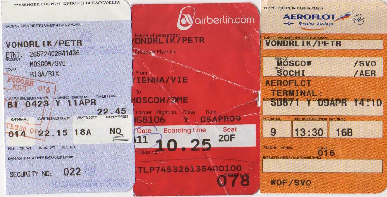 Zřízenec hlídající vjezd do komplexu nám bohužel vstup zakázal. V tomto případě nám taxikář pomohl s vyjednáváním. Po delším smlouvání jsme vstoupit směli, ale za poplatek 500 RUR, což jsme rázně odmítli i vzhledem k tomu, že bychom neměli peníze na taxi zpět. Rozhodli jsme se tedy přesunout dále na letiště. Opět následovalo úporné smlouvání o ceně taxi. Rozhodnutí o přesunu přímo na letiště bylo zásadní, protože se asi 5 km před Adlerem vytvořila velká kolona aut a kdybychom jeli na poslední chvíli, nemuseli bychom náš let vůbec stihnout. V Adleru na letišti svítilo sluníčko a bylo příjemně. Odbaveni jsme byli bez problémů a po poledni jsme odletěli ruským strojem TU 154M do Moskvy. Bohužel jsme seděli v zadní části letadla vedle motorů tohoto několik desítek let starého letadla a neslyšeli jsme vlastního slova. Do Moskvy jsme dorazili s mírným zpožděním. Zde nás opět čekal přesun mezi terminály a poté odlet do Rigy. Přes toto město jsme letěli proto, že se nám podařilo sehnat levné letenky. V Lotyšsku jsme si tedy naplánovali návštěvu letoviska Jürmala na pobřeží Baltského moře.