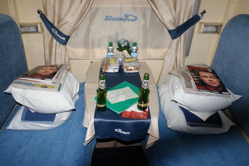 Navíc dost nelogické- když už bych jel do Moskvy, koupil bych si v Bp lůžkový lístek na Tisza expres a byl bych v Moskvě jen o pár hodin později. Je sice pravda, že čumět do Stalinových bříz podel tratě záhy omrzí, ale prostě to k bývalému Sovětskému Svazu patří (resp. k těm oblastem, kde Stalin vládl před rokem 1940), zato letadlo je dost sterilní. Railjetem můžu v Premium class jezdit z Bp do Györu po libosti za cca. 3000 HUF (300 Kč), tak nevidím důvod proč to spojovat s Ruskem.