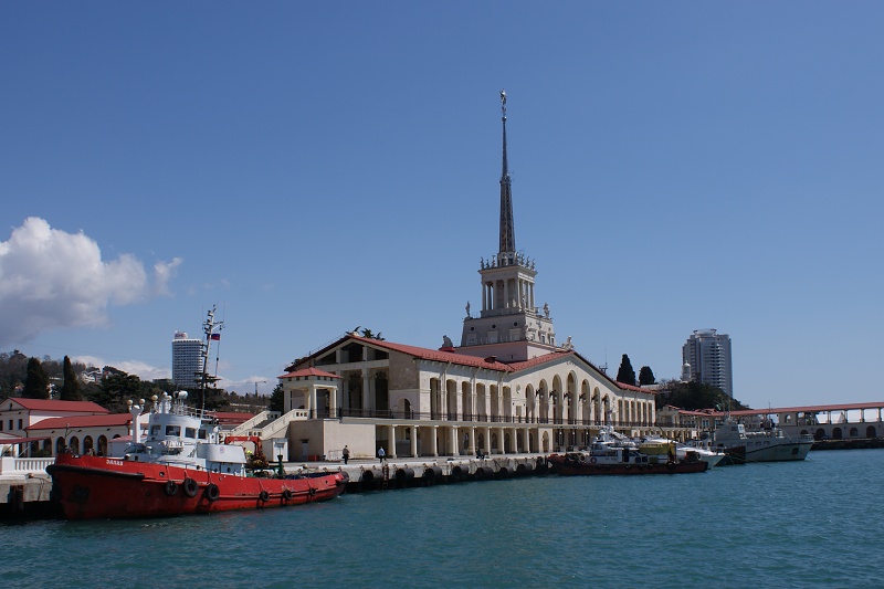 Ráno jsme se dostali z postele až po 11. hodině a vypravili se hledat směnárnu, abychom si v Rusku vyměnili poslední peníze. Zvolili jsme promenádu směrem na Adler, což byl však špatný směr. Hledáním směnárny jsme strávili více než hodinu, ale na druhou stranu jsme měli možnost prohlédnout si i odlehlejší části města. Cestou zpět do centra jsme si prošli i místní památky. Viděli jsme majestátní sochu Lenina, lázeňský pavilon a u moře potom přístav s Mořským úřadem. Po několikahodinové procházce jsme konečně nalezli banku. Fungoval zde elektronický lístečkový systém, který však nedodržovali ani zákazníci ani bankovní úřednice. Postavili jsme se tedy ke skleněným dveřím, za kterými probíhala výměna a čekali jsme. Dva zákazníci před námi byli odbaveni až po půl hodině a na nás čekalo hořké zklamání. Úřednice nám suše sdělila, že nemá rubly a peníze si máme vybrat v bankomatu. Byli jsme šokovaní a zkonstatovali jsme, že praktiky a zkušenosti z dob Sovětského svazu úspěšně přetrvávají.
