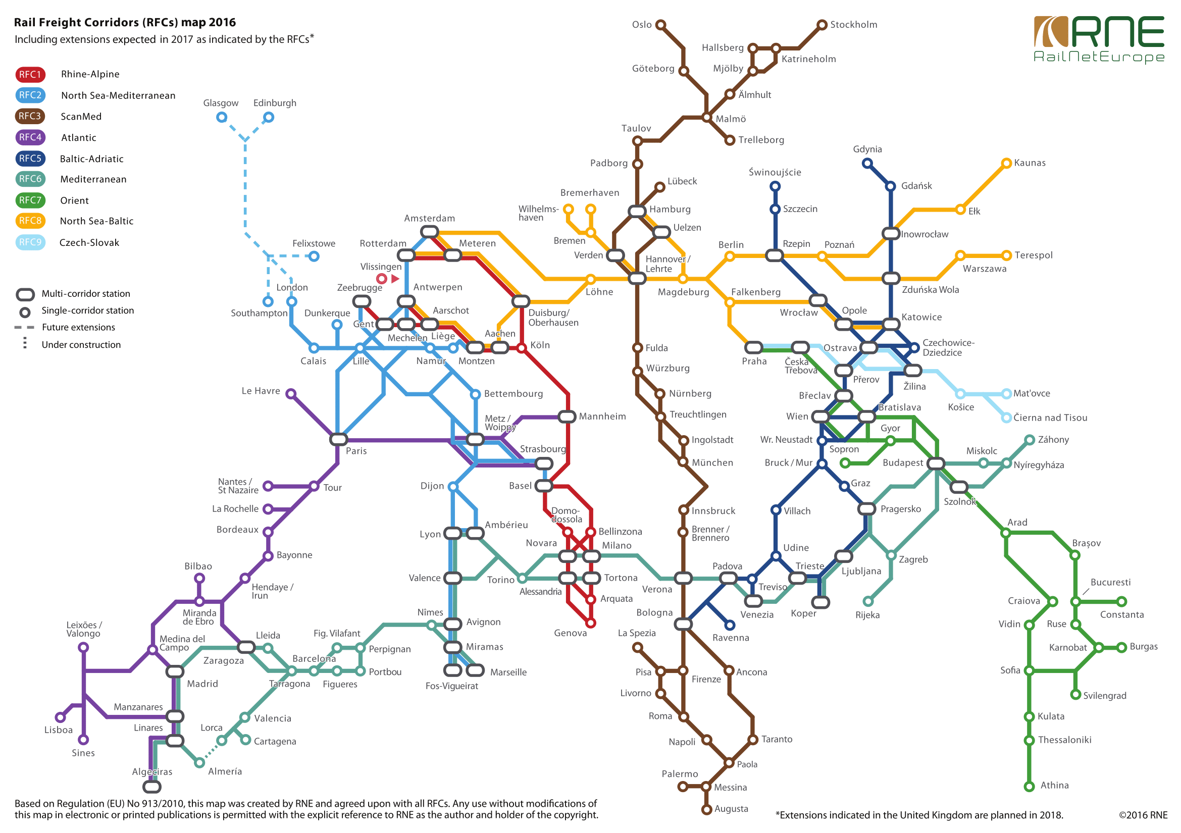 - RFC 8 – Severomořsko-baltský (Amsterdam/Antverpy/Hamburk – Berlín – Praha/Kaunas/Terespol),