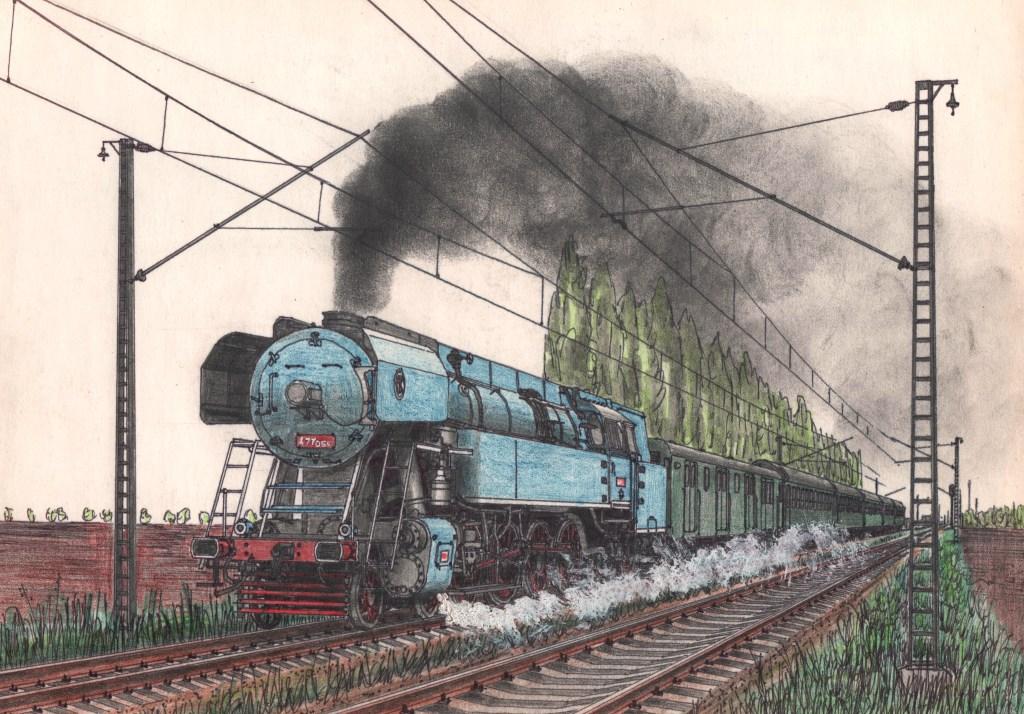Snad se na mne pánové Maurenz a Šlechta nebudou zlobit, že jsem krásnou fotografii z jejich knížky „Toulky s párou“ před mnoha léty převedl do tužky a pastelek s tím, že místo plzeňské „pětasedmy“ se mi tam zčistajasna objevil lipský „papoušek“. Ale atmosféra oné fotografie, tolik připomínající onen výše opěvovaný „Máchův kraj“, si o takový čin přímo říkala. Kde vlastně přesně je to místo na kresbě, podstatné zase tolik není. Prostě jako kdyby to bylo někde mezi Lípou a Bakovem.