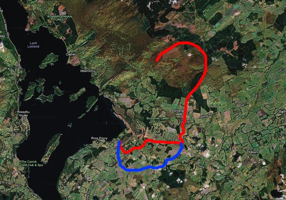 Přecházíme přes jednu z mnoha říček a značka nás vede do koryta potoka. Ještěže už neprší, to by tudy asi teklo o hodně víc vody. Po namáhavém výstupu konečně stojíme na vrcholu kopce a vidíme jezero Lomond v celé své kráse. Z vody vystupují barevné ostrůvky a vypadají jako hřbet nějaké obrovské příšery. V dálce je vidět i moře a po chvilce hledání nacházíme i náš kemp. Nemůžeme se však kochat moc dlouho, neboť bychom rádi dorazili ke stanu za světla.