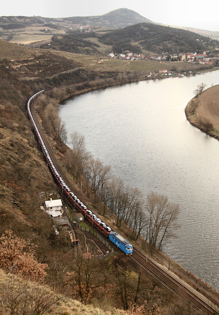 Takto to po dostavějí Hyundaie bude vypadat po celé České republice. Všude se budou vozit nová auta (z Mladé Boleslavi, z Vrchrabí, z Nošovic) a budou to táhnou lokomotivy ČD Carga.