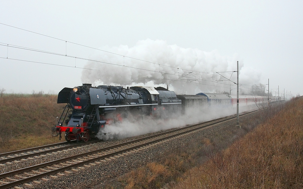 Vedel by som si predstaviť aj o niečo lepšie miesto, neviem, ako ste na tom boli s časom stíhali. Medzi Báhoňom a Trnavou je to len rovina. Každopádne hmla bola taká, že fotiť trošku ďalej od trate nebolo možné. Práve z dôvodov, ktoré spomínal Honzinus, som šiel fotiť pod Malé Karpaty na trať 116 a tiež som riadne nadával na tú súpravu na čele s laminátkou spojenú s požiarnym vlakom. Vzhľadom na podmienky slušný edit. 4*
