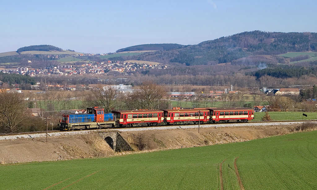 Tom:Já jsem šel tenhle vlak fotit asi o 500m dál,páč z tohoto fleku už foto mám,když jsem se vracel,neveřil sem vlastním očím.Uprostřed pole jedinej strom,eště ke všemu obrostlej dooost hnusnejma křovinama ze všech stran,a koukám jak Vítek z něj pomalu slejzá z výšky dolu:D opravdu bych řekl takových 6-10m, mám ho i na fotce,dyžtak pošlu;) ale bylo pěkně,den se po všech stránkách vydařil:)