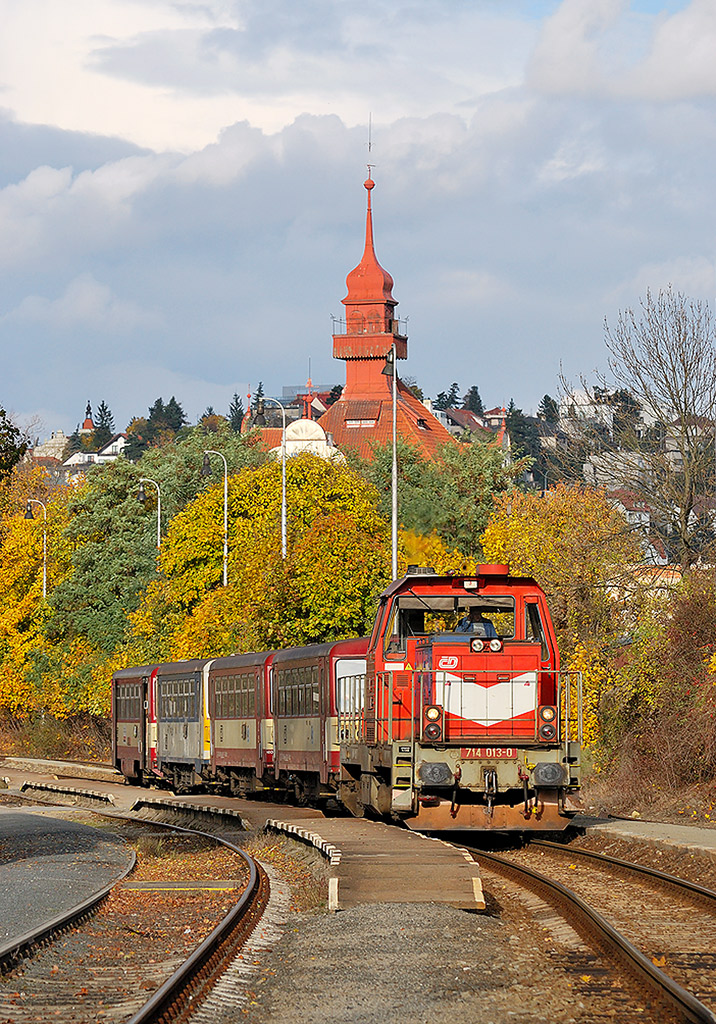 Zdeněk Štěpánek: dveře umí otvírat 714 sama a jako řidičák 810 fungovat neumí. Nejsem odborník na říjnový násvit v Braníku, takže nevím, co to bylo za vlak ani u sebe nemám dotyčné oběhy, ale viděl bych to na normální přesun motoráku odněku někam, ať už turnusovaný, nebo jako mimořádnost.