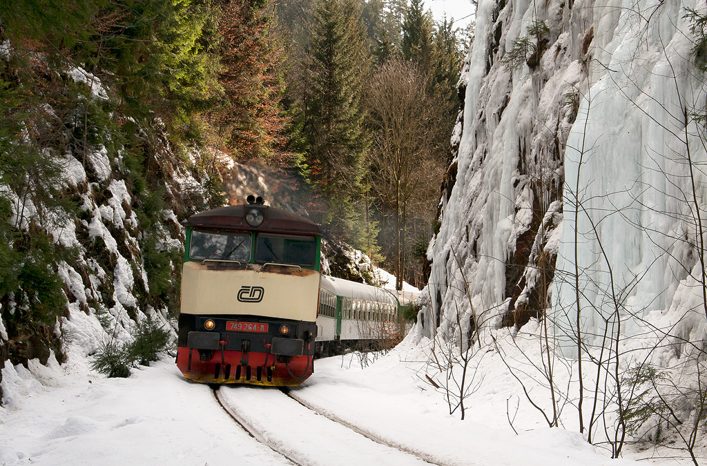 Pěkný, líbí se mi ty ledopády, ve spojení s barčou prostě paráda. A zeptám se - baruny jezdí na těchto rychlících pravidelně, nebo jen jako záloha když zrovna nejede 750.7?
