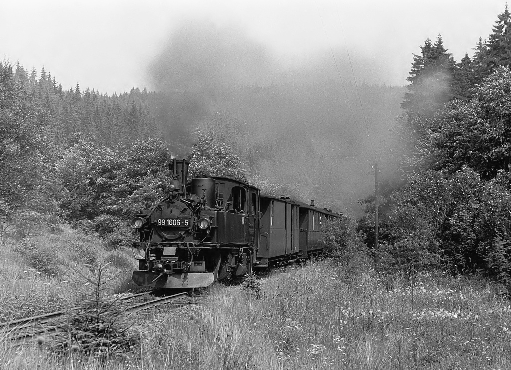 Stoupa:To víš,že si to pamatuju,Libore,vždyť jsem tu trať několikrát prošel celou pěšky.Dnes je to jen turistická atrakce,ale tenkrát to mělo úžasnou,nepopsatelnou atmosféru,Jako kdyby ses najedou ocitnul v jiné době a v jiném světě.Pamatuji si když jsme poprvé přijeli do Wolkensteinu,někdy o prázdninách v létě 1977(kam nás posledním půlnočním osobákem z Chemnitz-K.M.Stadtu přivezla rovněž pára-86)a spatřili jsme to úzkorozchodné nádražíčko vedle té řeky a ty kolejky,nějak jsme nevěřili,že po nich něco přijede.A ono přijelo...Meyerka pocházející z 19.století.Říkám-to se fakt nedá popsat.