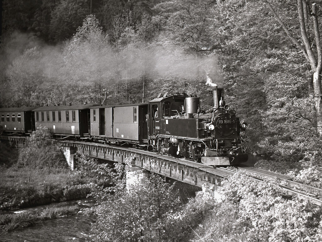 ![]() | Informace o fotografii: - Místo focení: Streckewalde - Datum: 25.5.1979 - Autor: Drahos Svestka - Pozn.: Přes jeden z nesčetných mostů přes řeku Pressnitz právě přejíždí "Meyerka"v čele Os vlaku do Niederschmiedbergu - Zobrazeno: 2797x - Detailní EXIF informace » - Rating od autorů: 10 - Rating od uživatelů: 10 |