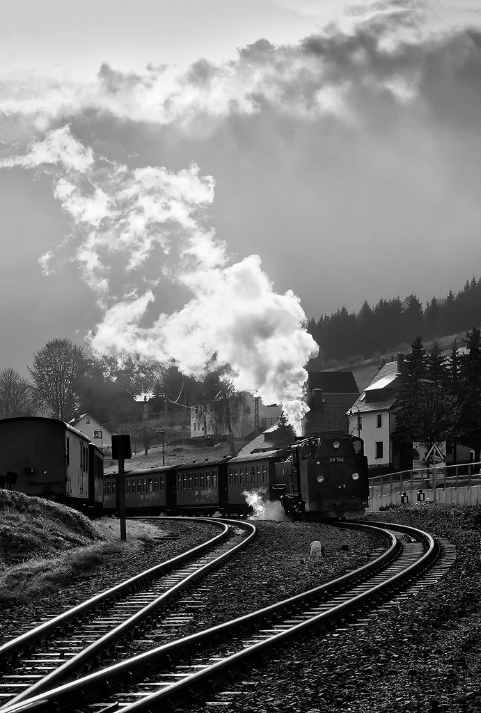 :-) No jó, Hammerunterwiesenthal; tam jsem přežil 2002 infarkt. ovezl jsem gumokolem rodinku do Cranzahlu a posléze je nasadil do vlaku s prosbou, ať nelezou na plošiny (synek tehdy 4 roky, žena bez dozoru ve vlaku asi po 30ti letech). I "Schaffnera" jsem prosil, ať na ně "dohlédne", že neumí německy, jen paní anglicky. Laskavě, a s pochopením mi odvětil krásnou lámanou češtinou v duchu "muj otec taky byla félká sokolofna". Předjel jsem s úmyslem v této stanici filom/foto dokumentovat. Zajisté, všeci na plošince a lkuka nikdo nedržel, zběsile taťkovi mávali... :-)