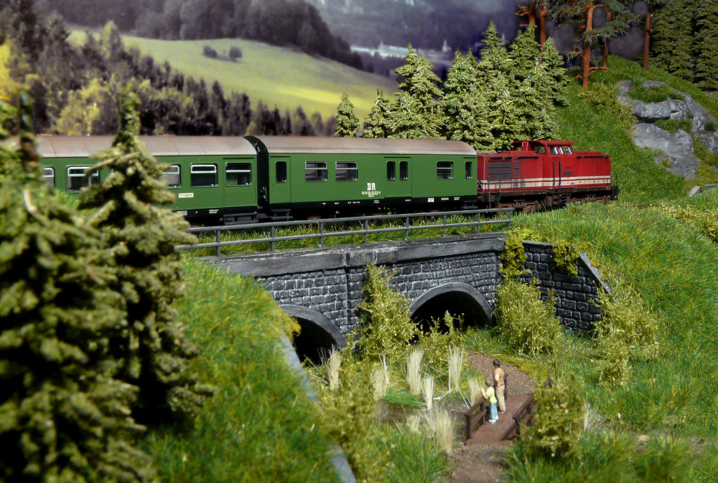 Tak v tom případě má figurka dospělého i dítěte abnormální vzrůst. Při letmém přeměření výšky figurky posunuté na úroveň viaduktu mi vychází nedostatečná výška. Jedině snad, že by šli potokem, aby nemusely ohýbat hřbet...