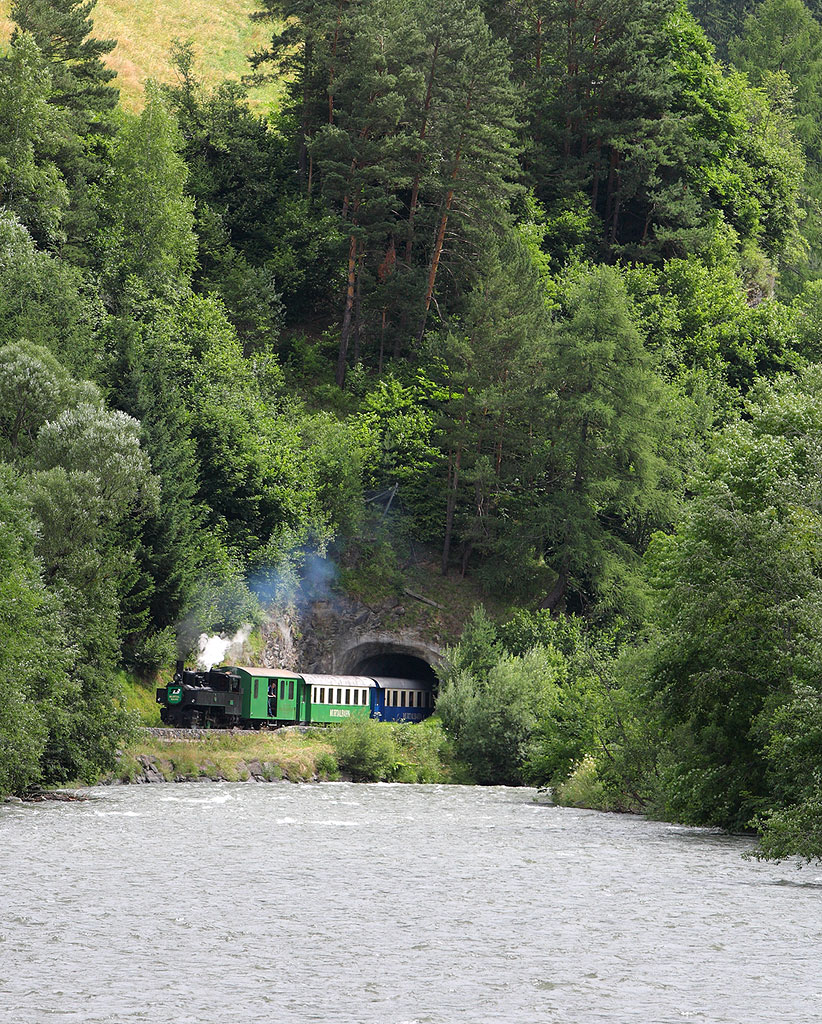 Tato fotka je pořízena kousek od stanice Ramingstein. Parní provoz je mezi stanicemi Murau a Tamsweg (38km) a jezdí se v úterý a ve středu od konce června do půlky září.