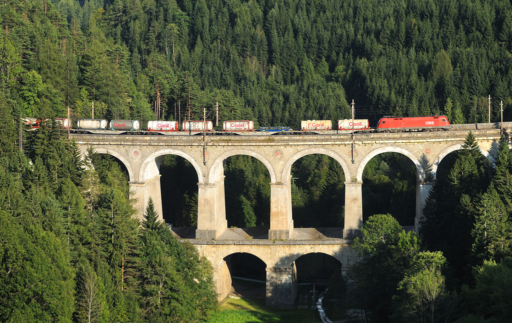 Jejda,KalteRinne viadukt.Výška 46m,délka 148m.Ten Karl Ritter von Ghega to tam pěkně zasadil.Čest památce dělníků padlých při stavbě dráhy na Semmering!