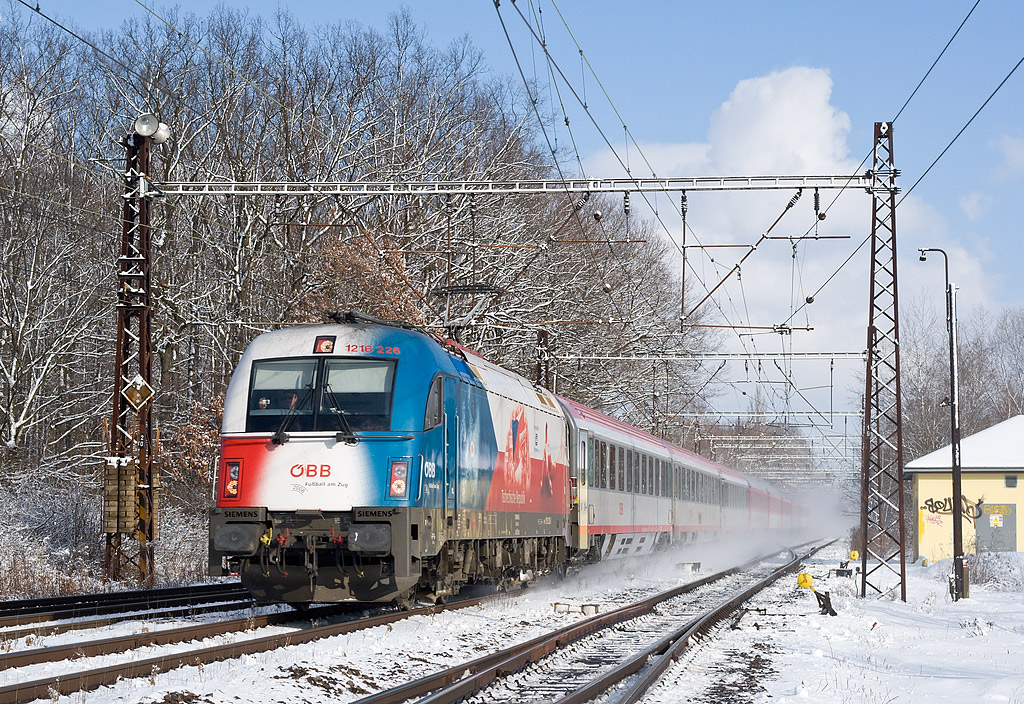 nádherná zimní náladovka!... líbí se mi ty zafoukané sloupy od sněhu a jak se souprava do zadu strácí, že ho sníh odlétávající od vlaku pěkně zakryl, celé to krásně doplňuje nádherná lokomotiva i když by se tam možná červený taurus vyjmul lépe, tento je aspon pěkně "český". Jasných 5*
