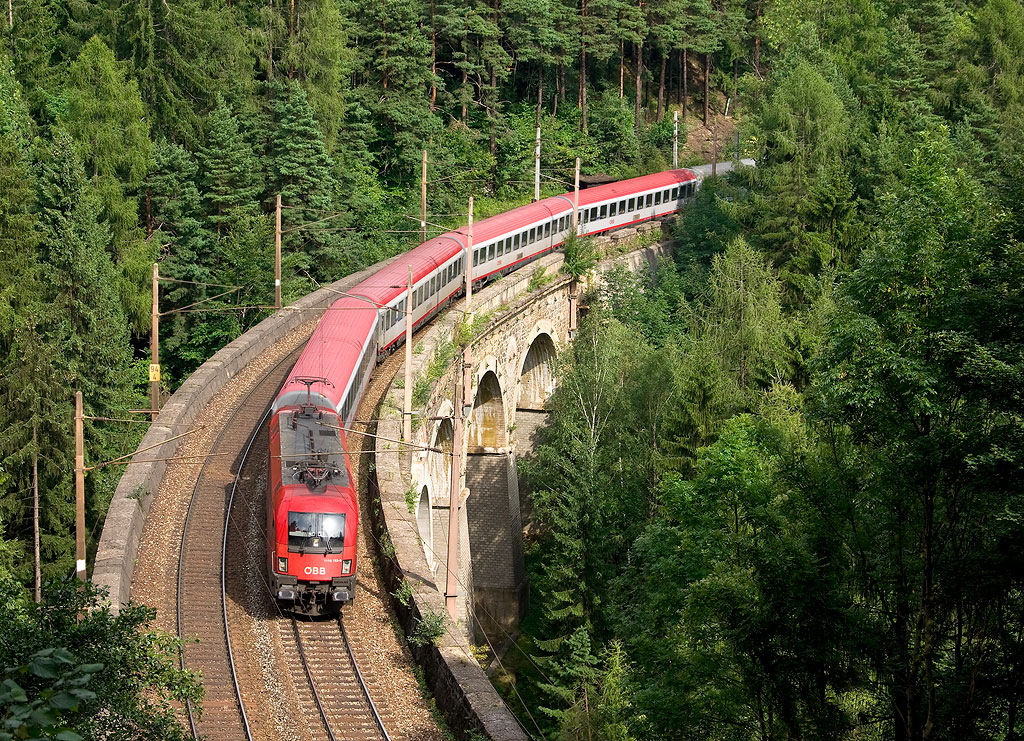 Velmi slušně zeditovaný neokoukaný pohled ze Semmeringu. Škoda, že Polonia veze ty posilové vozy a z klasické polské soupravy toho moc vidět není ;-)