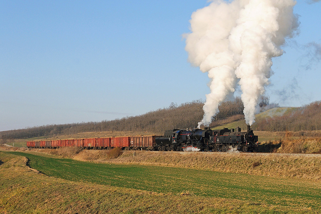 Veliká krása. Lokálky na Moravském poli v akci. Určitě je to fotovlak (resp. pára nasazená na pravidelný návoz řepy po patrně jinak příliš nevyužívané trati), ale připomíná to mladá léta, kdy se podobné řepáky pohybovaly i po našich tratích, sice s jinými, ale podobnými lokomotivami - třeba 423.0, 434.2, 556.0...