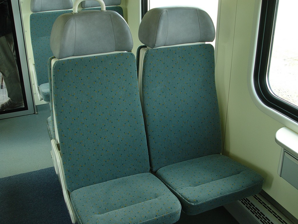 Snímky z 16.6.2004: Vůz Dm12 (kch), sedačky pro cestující (md), Kabina strojvedoucího (md).