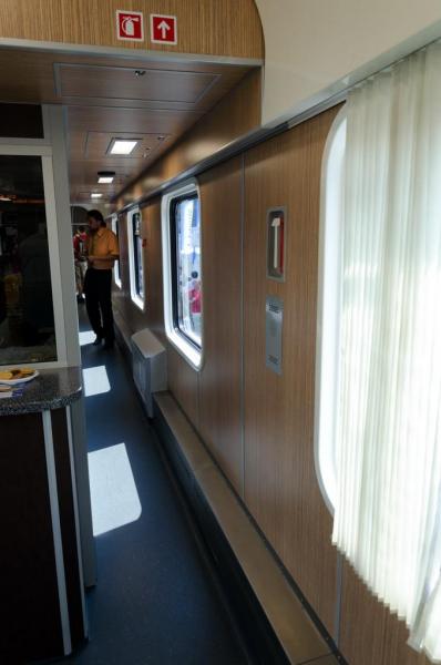 Všechny tyto atributy jsou přitom u produktu ŽOS Vrútky poměrně velkým překvapením. Společnost má totiž za sebou vývoj a dodávky série úspěšných jídelních vozů pro ZSSK, stejně jako zmiňovanou sérii bister pro České dráhy. Tyto typy vykazovaly celou řadu společných interiérových prvků, včetně nepřímého osvětlení a stropních podhledů, na které nová řada zcela rezignuje. Osvětlení se naopak vrací k přímému zářivkovému světlu, křivky interiéru v zásadě kopírují tvar vozové skříně… celá jedna generace vrúteckého designu se při vývoji tohoto vozu prostě někam ztratila.