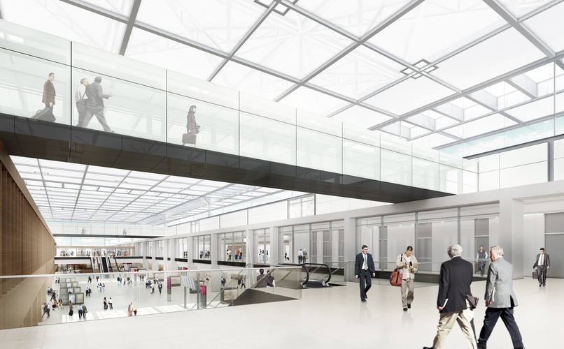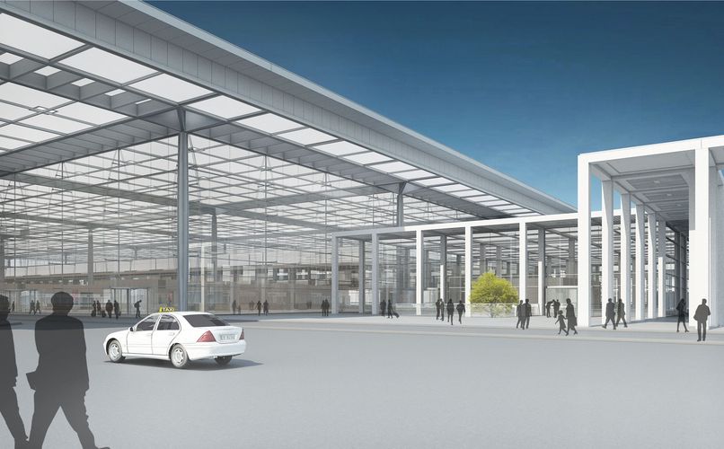 Nádraží u (resp. pod) letištěm má 6 nástupních hran, z toho 4 průjezdné s TV pro Fern a Regio Bahn, 2 kusé s napájecí kolejnicí pro S-Bahn. (http://de.wikipedia.org/wiki/Bahnhof_Flughafen_Berlin_Brandenburg)