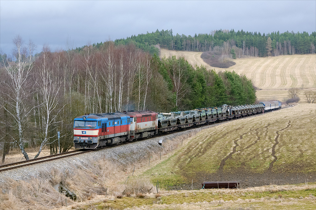 Tři bardotky na jednom vlaku, dříve denní chleba, dnes už jen výjimka nebo náhoda. Snímek armádní přepravy z Moravy do vojenského újezda v Polné na Šumavě se stroji 751.316-1, 749.019-6 a 749.018-8 u mne z celého výběru vyhrál na plné čáře! A říkám to, aniž bych chtěl oživit věčnou hádku mezi příznivci statných prsou a „kulatých okýnek“. Jediné co i tak pěknou fotografii kazí, je počasí. Příště by armáda před podobnou přepravou měla objednat alespoň takové, jaké má Petr Holub na svém snímku výše!