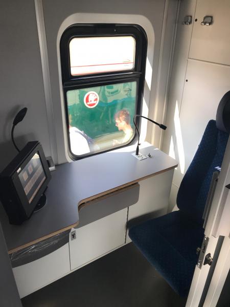 Vůz je důkladně vyčištěn, v interiéru jsou nové obklady některých stěn, u některých vozů nové potahy a především dvojice zásuvek s USB adaptéry. Dost mě ale udivilo, že byl vystaven vůz s původními potahy, čekal bych alespoň 048, co má potahy nové...